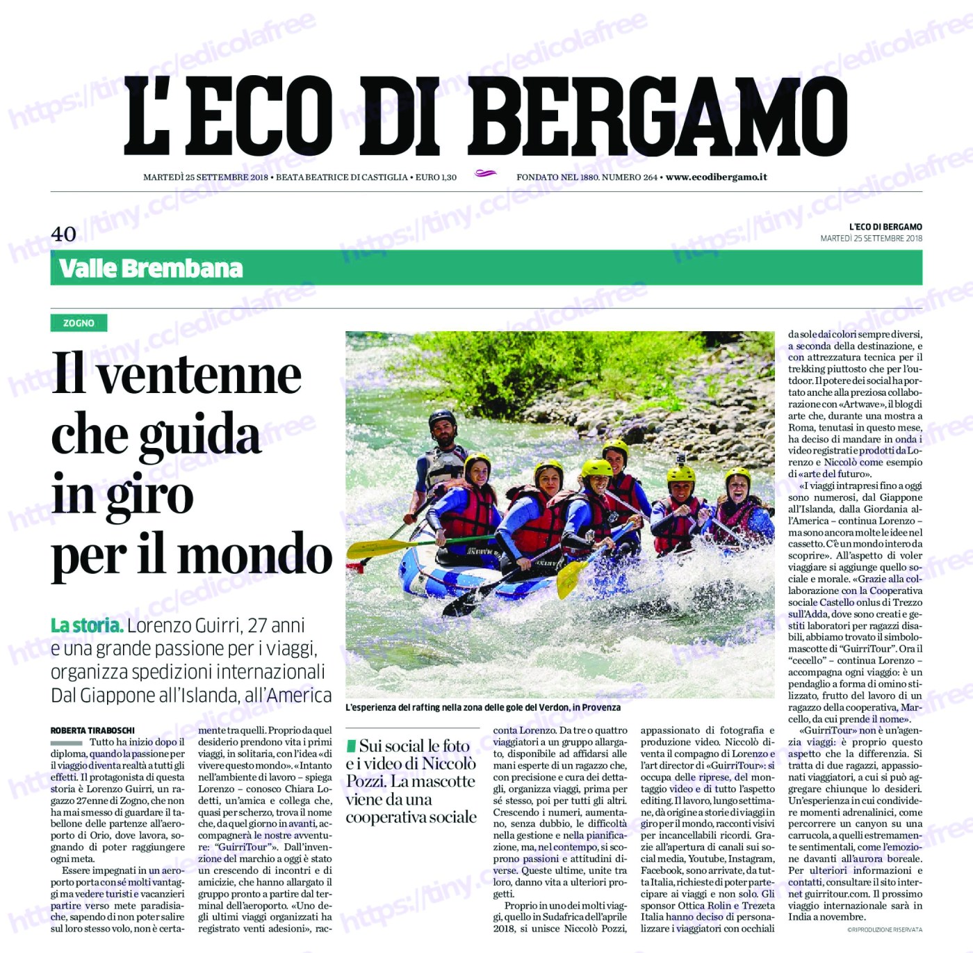 Oggi, 25 settembre 2018, è uscita in edicola la nostra intervista per L’Eco di Bergamo.