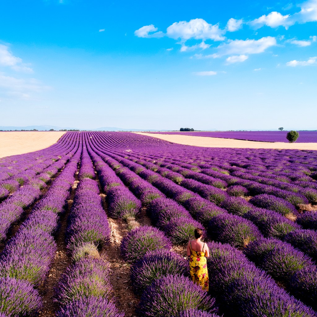 Finalmente è arrivato il momento tanto atteso: siamo sull’altopiano di Valensole, la valle del sole, dove le distese di lavanda si perdono verso l’orizzonte. I colori dei campi, all’ora del tramonto, sono ancora più affascinanti. Non serve ricordare che dovrete mettere un bel vestito nella vostra valigia, vero?